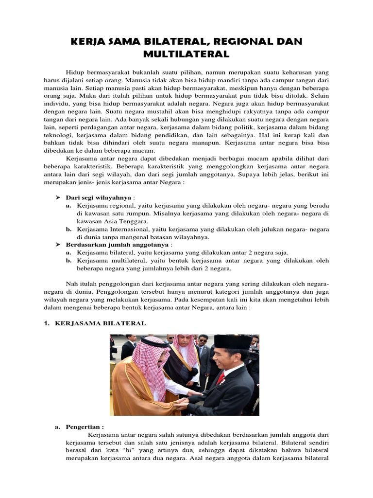 Kerja Sama Bilateral Regional Dan Multilateral